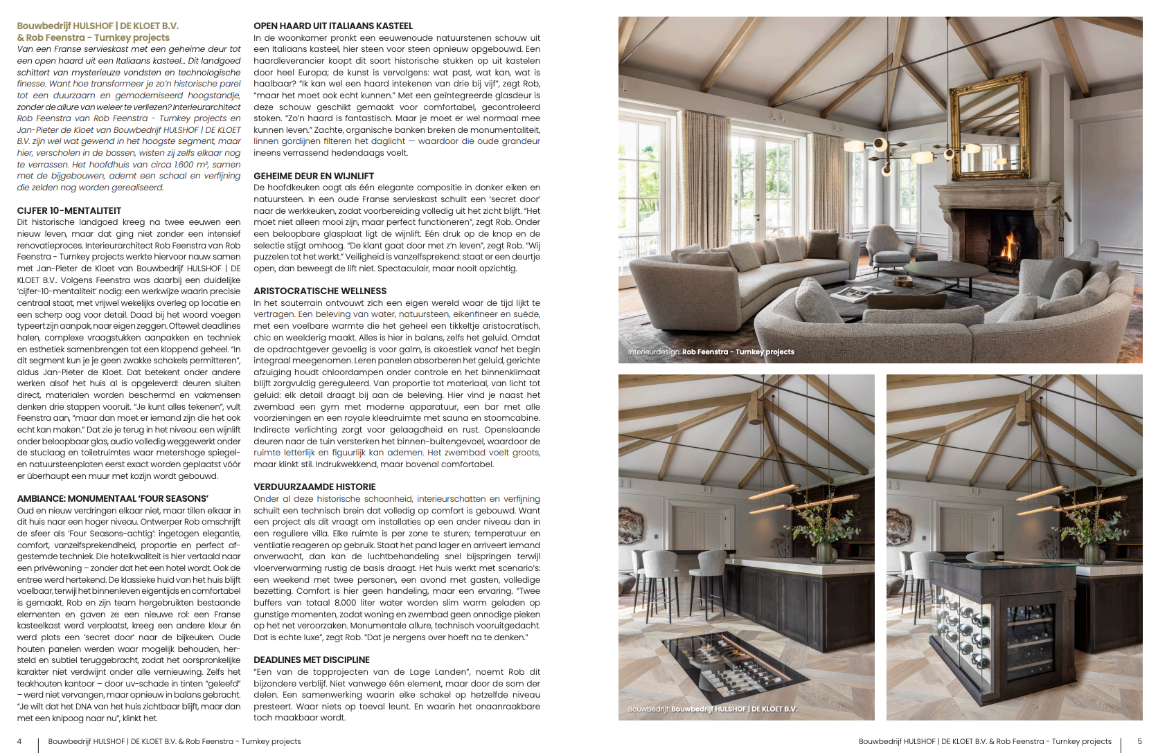 High-end interior design is Rob Feenstra’s mission. He delivers stunning interiors for homes, new construction projects and hotels. Using the finest materials and most exclusive brands, his creations breathe a luxurious and warm ambiance.